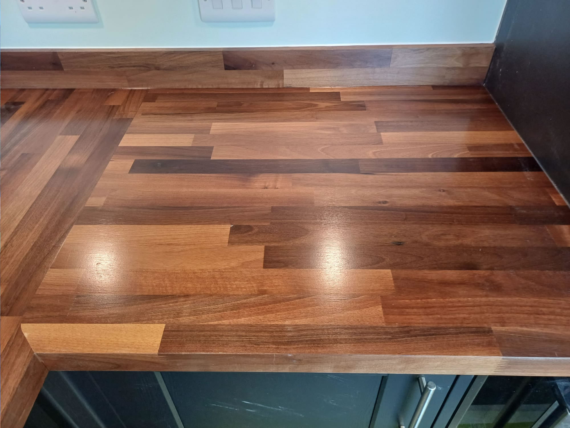 View Larger Image Solid Walnut Worktop Installation Installation of 40mm solid Walnut kitchen worktops near Taunton. These were finished with three coats of satin Osmo oil. This really enhanced the difference in the stave block grain and colour tones. admintj2026-04-24T11:42:33+01:00Recent Projects| Share This Wesbite, Choose Your Platform! FacebookXLinkedInTumblrPinterestEmail Related Posts Kitchen Reconfiguration & Compact Laminate Worktops Kitchen Reconfiguration & Compact Laminate Worktops Integrated Appliance Replacement Service Integrated Appliance Replacement Service
